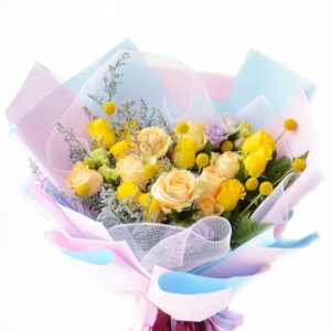 Giỏ hoa với những cành hoa Hồng và Cát tường sắc tím, cùng Cúc Veronica và Lá tùng nho, khắc họa tình yêu sâu thẳm mà bạn muốn gửi đi, hay ngược lại, là lời bày tỏ nhẹ nhàng rằng bạn thật sự biết ơn và trân trọng tình cảm sâu sắc của đối phương dành cho mình”
