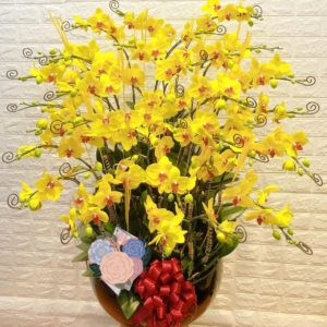 - Ý nghĩa của hoa lan Hồ Điệp vàng: Hoa lan vàng là một biểu tượng của tình bạn đẹp, một khởi đầu mới tốt lành, thể hiện cho hạnh phúc tròn đầy và dồi dào tài lộc. Những chậu hoa lan vàng này không những có vẻ đẹp thanh cao mà nó còn mang tới thông điệp về một cuộc sống no đủ, thịnh vượng.